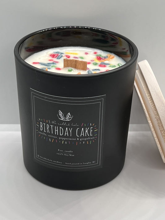 Birthday Cake| 8 oz. Soy Wax Essential Oil Wood Wick Lux Vessel