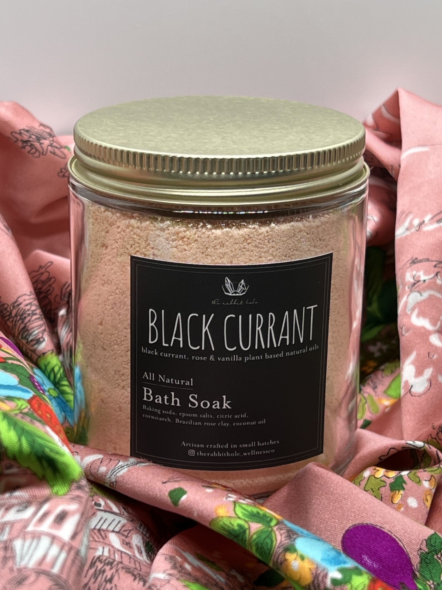 These bath salts are locally handcrafted from all natural ingredients. Their base is baking soda, epsom salts, citric acid, cornstarch, coconut oil and water. They are fragranced with all natural oils which have been extracted from raw botanical products. "Black Currant" bath salts are naturally coloured with Brazilian old rose clay which is full of magnesium, potassium and calcium and very moisturizing for your skin.