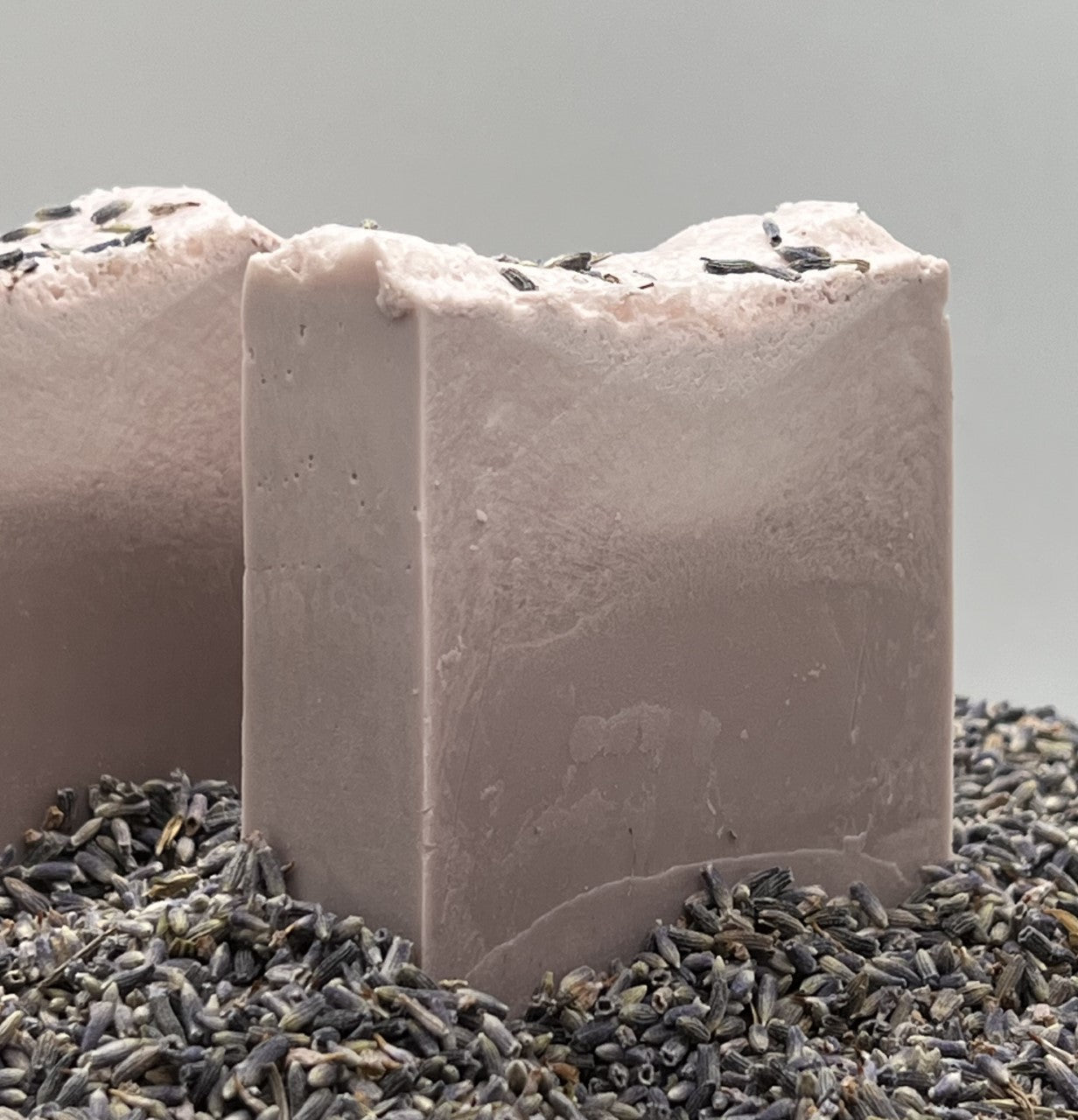"Botanical" has a goat's milk base. It is a calming soap that will transport you to the spa. It is naturally coloured with Brazilian purple clay which is full of magnesium and helps rejuvenate your skin.