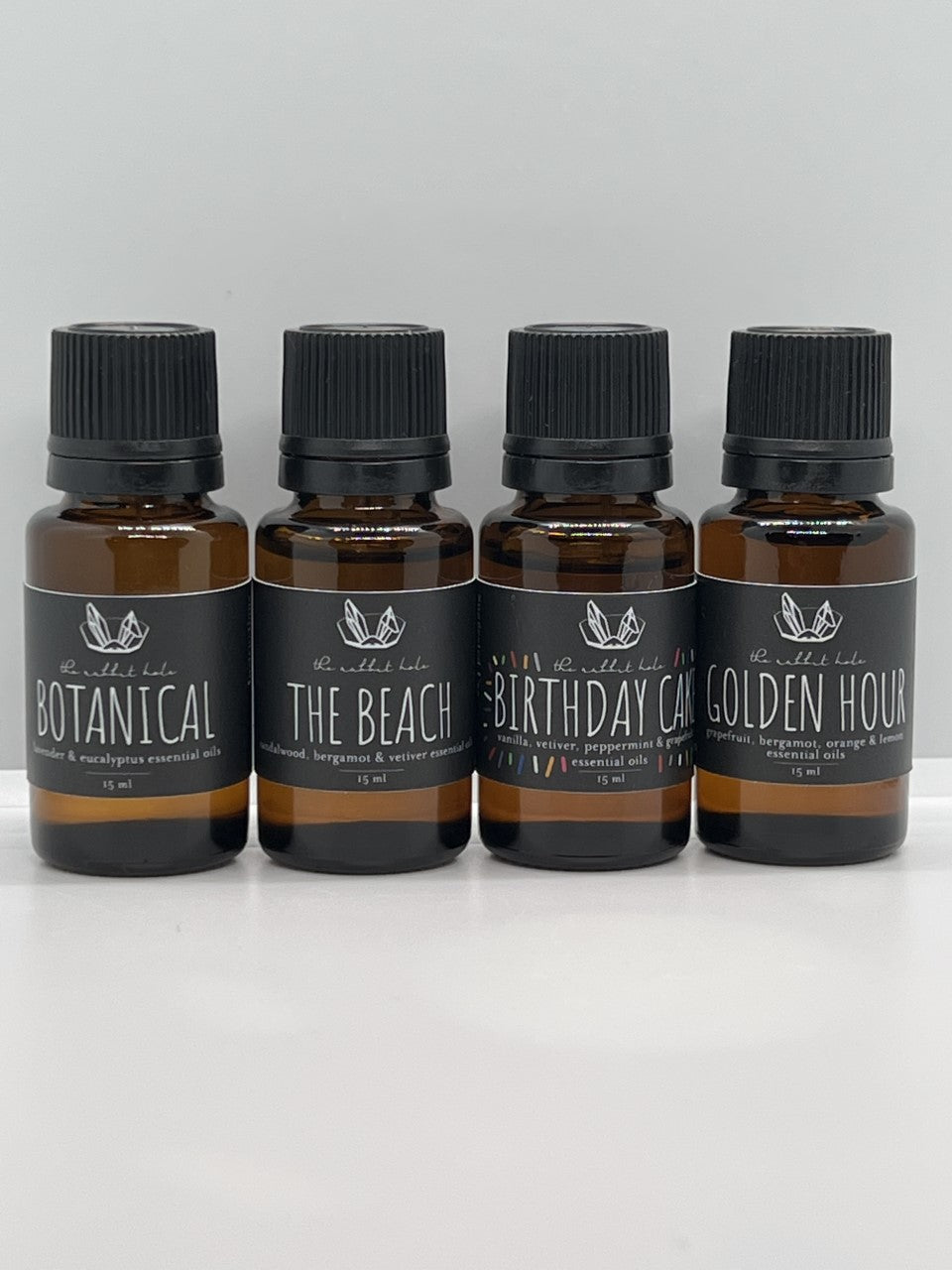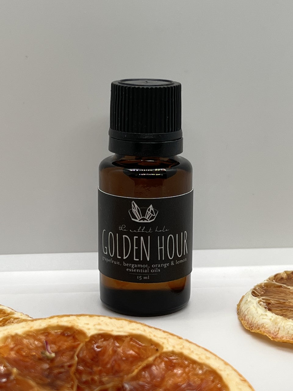 "Golden Hour" is a combination of grapefruit, bergamot, lemon and orange pure essential oils. This is a medley of citrus fruits that are vibrant and fresh. Enjoy the scents that you have enjoyed in the candles and other products from "The Rabbit Hole" now in your own diffuser.