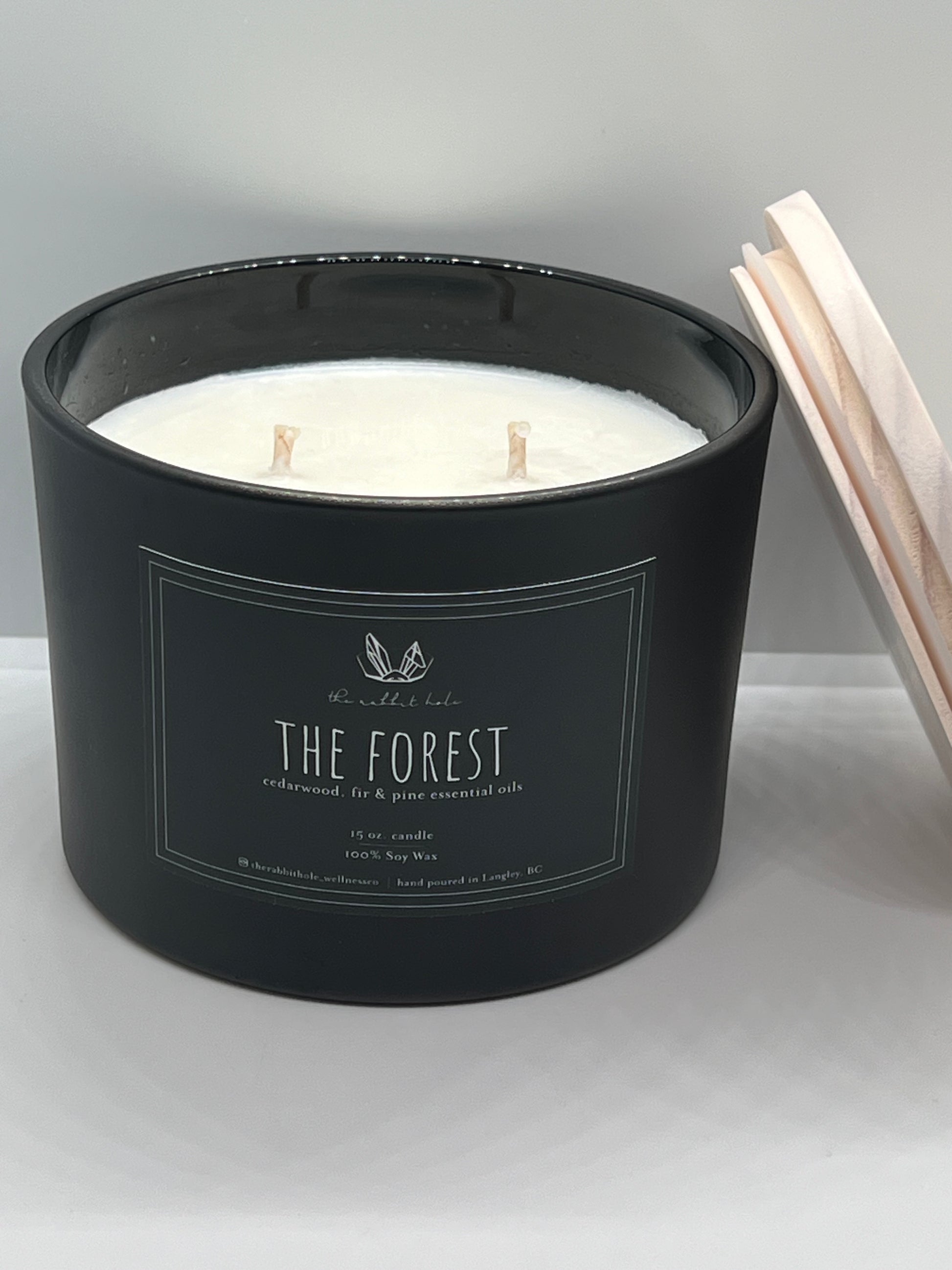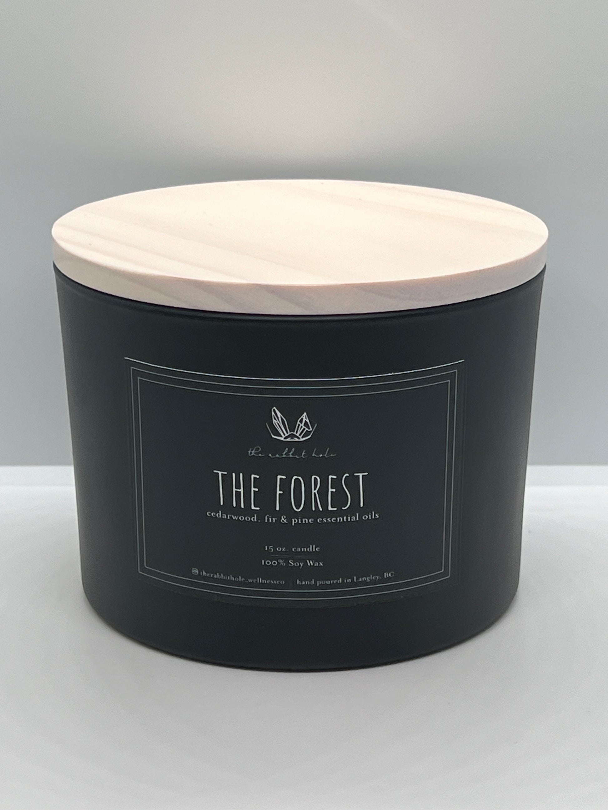 All of our candles are made with 100% soy wax. “The Forest” is a candle that will transport you to the pacific northwest woods. It is created with cedarwood, fir and pine pure essential oils.