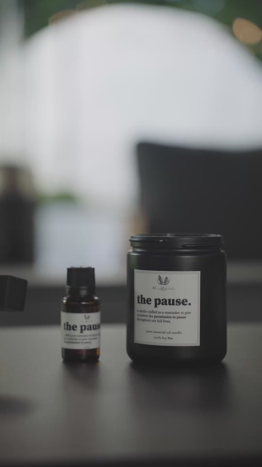 All of our candles are made with 100% soy wax. “The Pause” is a raw, earthy and natural candle. It is created with a mixture of palo santo, sandalwood, vetiver and black pepper pure essential oils. This candle is poured in a mini lux 4 oz vessel.