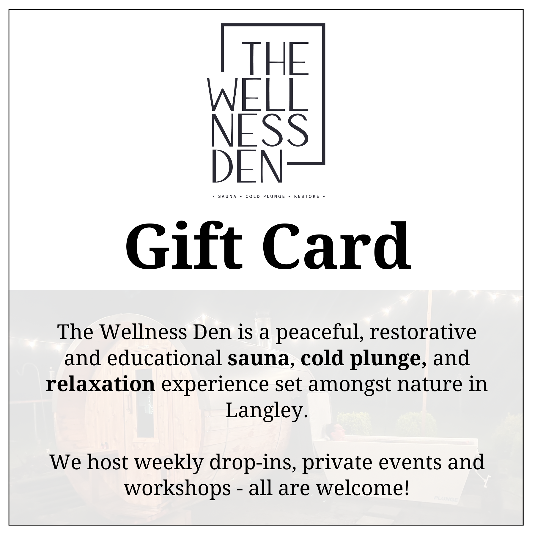 The Wellness Den Gift Card | Sauna, Cold Plunge, Restore in Langley, BC